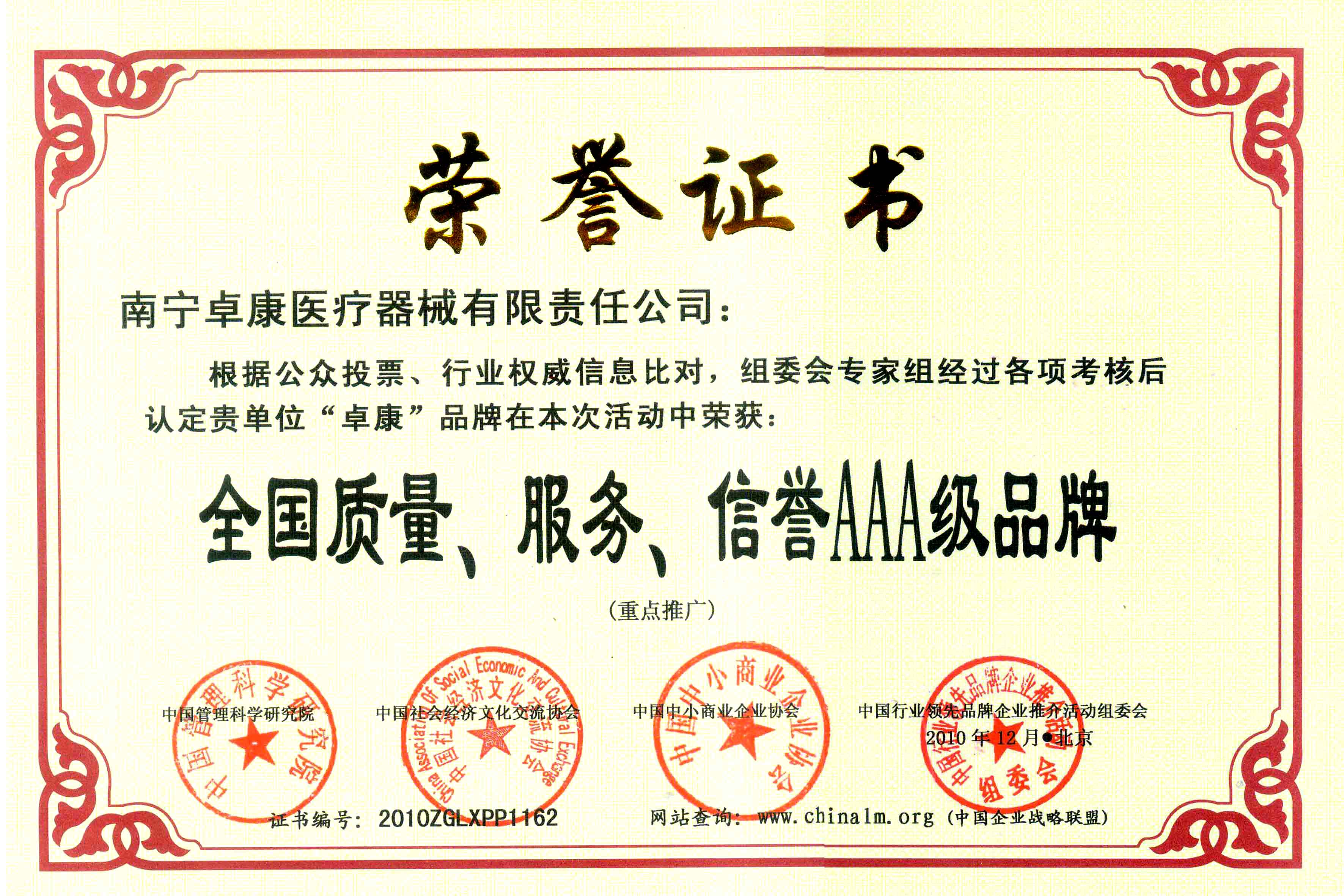 陸江榮獲引領(lǐng)行業(yè)發(fā)展杰出貢獻人物證書 --------卓康公司榮獲全國質(zhì)量、服務(wù)、信譽AAA級品牌證書